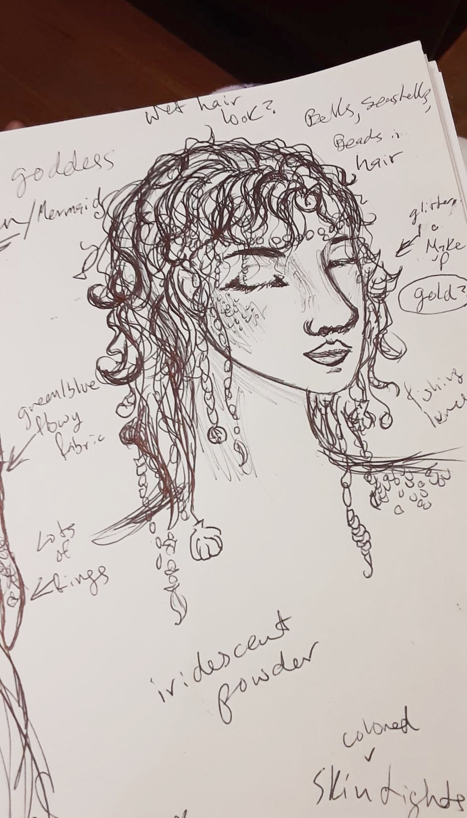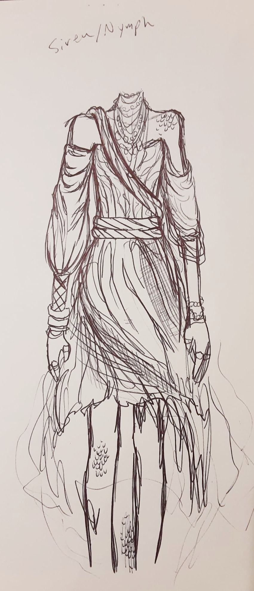 I have decided on a costume for this upcoming Halloween- A mermaid/siren! This costume will be reliant mainly on textures with a flowing dress and many, many seashells. Below are some of my brainstorm sketches đŸ™‚