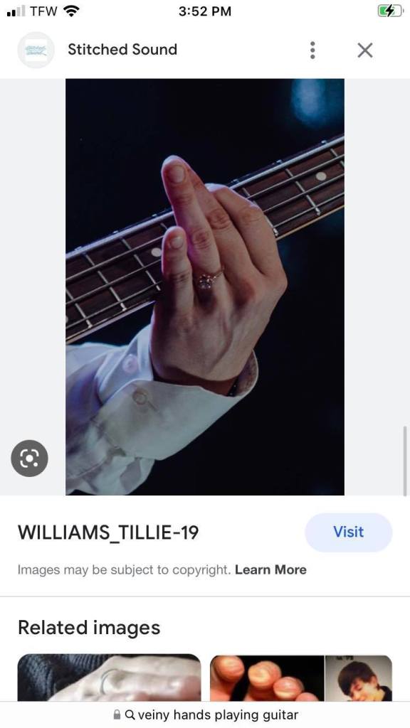 I refined the fingers and began adding details. I wanted the guitar neck to be dark like in the picture, but still stand out against the background. The guitar had a long way to go and I was nervous about it. I don’t play guitar or know anything about them! I wanted the chord the musician to be playing to look accurate. It took a lot of trial and error. Lots of measurements and confusion!
